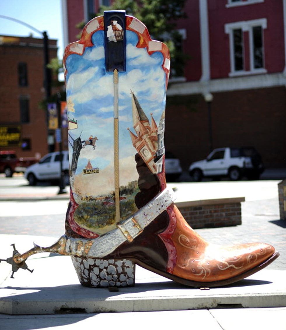 Oversized, hand-painted cowboy boots scattered around Cheyenne.