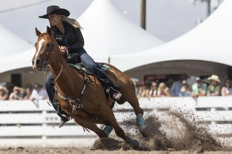 Barrel Racing is where skill and trust between rider and horse shine. Riders race around three barrels in a cloverleaf pattern, with tight turns and full-speed sprints that keep fans on the edge of their seats. This event starts from the north end of the arena and is always a highlight.